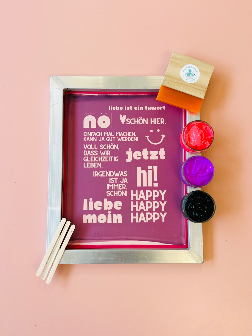 Und du findest hier das coolste, individuelle Siebdruck-Equipment Noorddeutschlands. Siebdruck-Starter-Sets für dein Druckglück Zuhause.