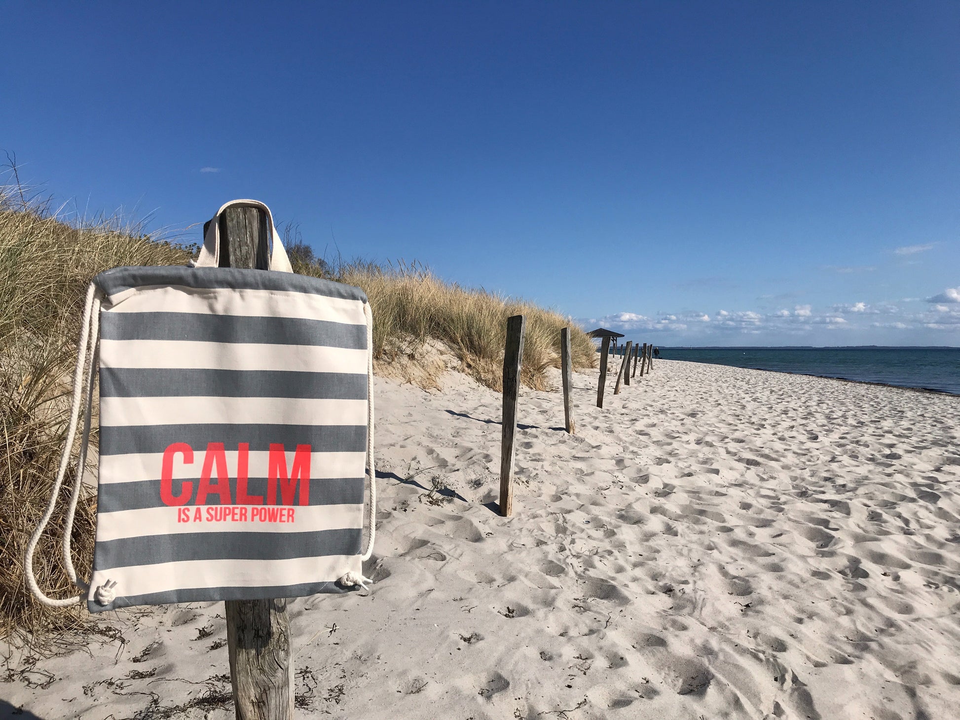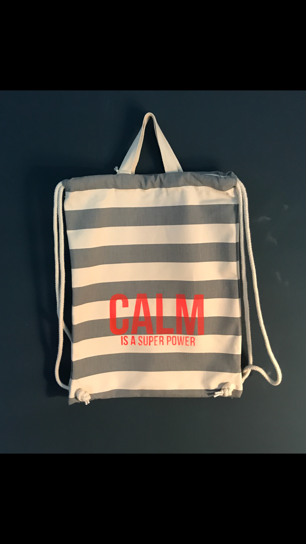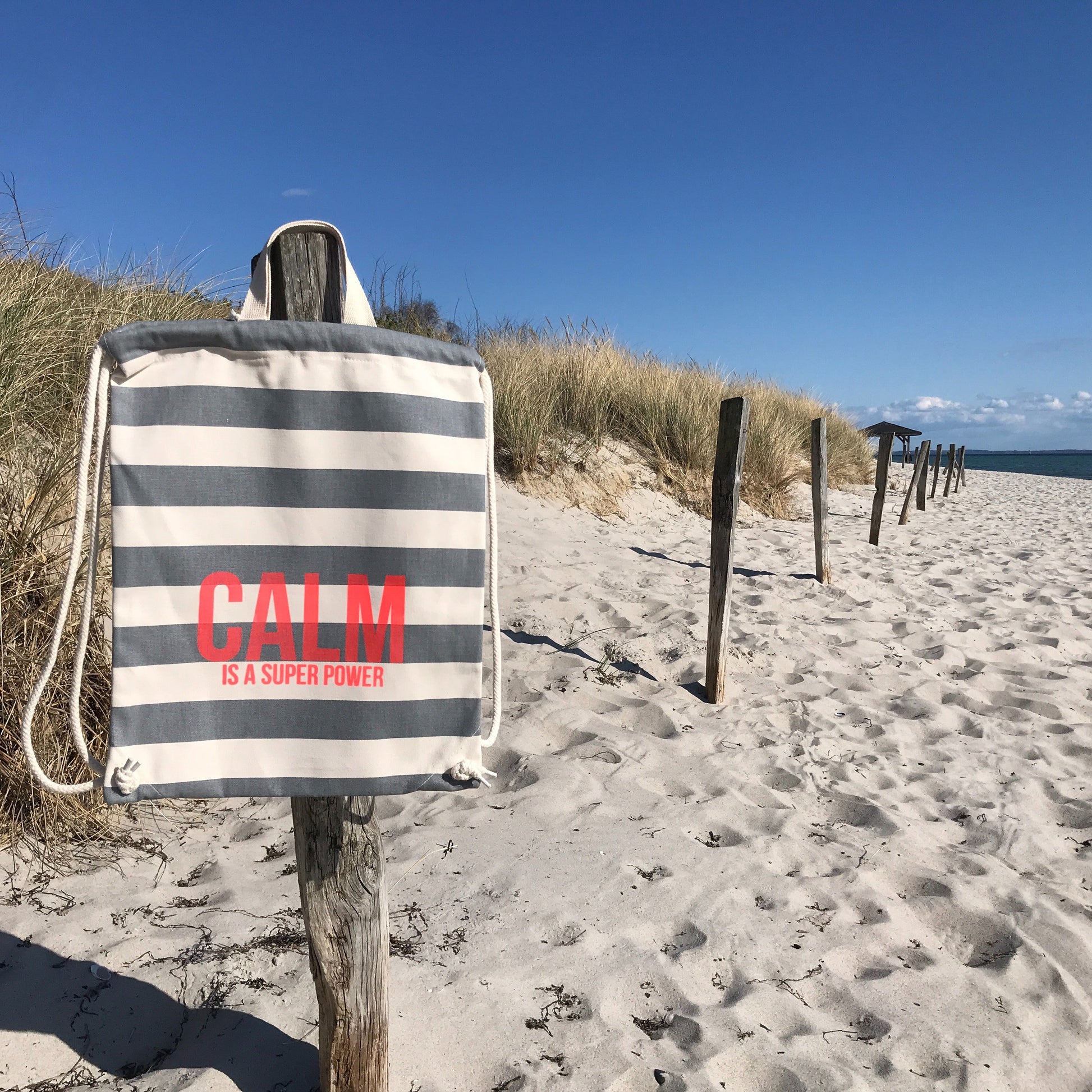 Dieser Nautical Gymsac gehört einfach zu entspannten, gelassenen Leuten - Grau/weiß gestreift mit einem wunderbaren Spruch in orange.